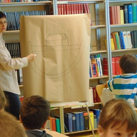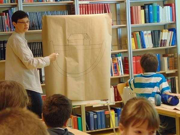 2 czerwca w bibliotece uczelnianej dzieci z kl. II c zaprzyjaźnionej SP nr 8 wzięły udział w warsztatach ilustratorskich. Animatorem warsztatów była znana pisarka i ilustratorka, autorka min. takich książek jak: „Matka Polka”, „Cierpienia sięciolatka”, „Stary Noe” – Zuzanna Orlińska. W trakcie warsztatów dzieci rysowały ilustracje do ostatnio wydanej książki - „Stary Noe”. Miały za zadanie narysować arkę i to, co w pierwszej kolejności uratowałyby z potopu. Oczywiście najczęściej rysowały tatę, mamę, psy i koty, ale zdarzyło się także Ufo i inne niesamowite rzeczy. Prace uczniów można oglądać do 12 czerwca w holu naszej biblioteki.