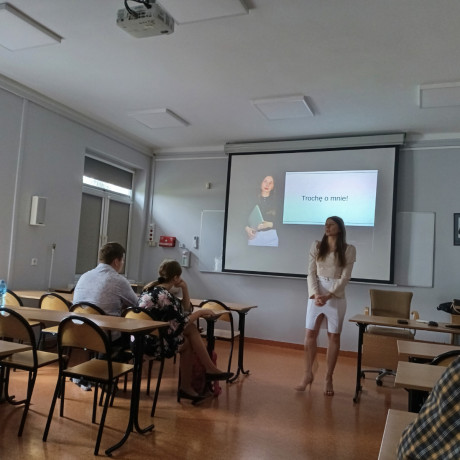 Wśród nich była Katarzyna Michalska, która zaprezentowała talent malarski: studenci mogli podziwiać jej zeszyty artystyczne. Z kolei Michał Buczyński przeczytał wywiad, który przeprowadził ze… sobą. Mówił w nim o swoim funkcjonowanie na co dzień w ośrodku i w szkole. Natomiast wychowawczyni Agnieszka Krzyżanowska opowiedziała o swojej drodze zawodowej oraz pasji, jaką jest praca z drugim człowiekiem.