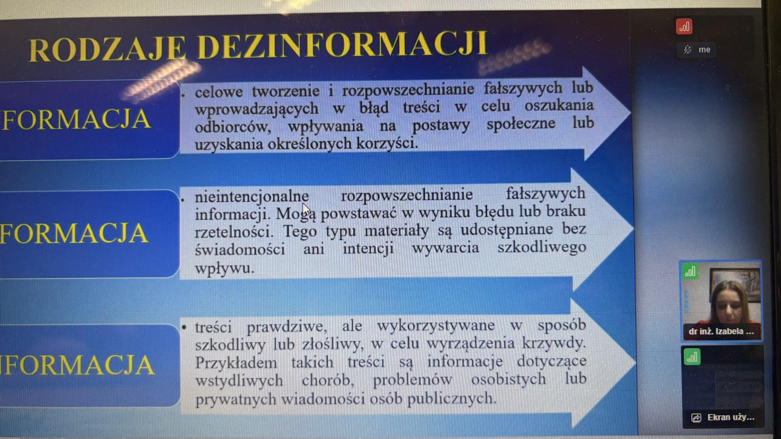 Spotkanie odbyło się 4 grudnia 2025 roku online i dostarczyło uczestnikom pogłębionej wiedzy na temat natury dezinformacji oraz mechanizmów manipulacyjnych, stanowiąc istotny wkład w kształtowanie odporności na fałszywe i zniekształcone informacje.