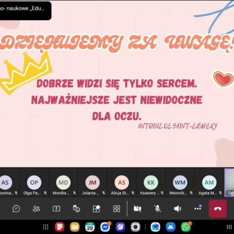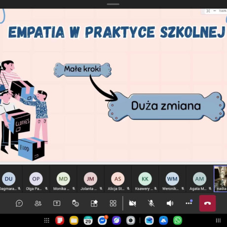 Opiekę merytoryczną nad webinarium, które odbyło się 29 stycznia, sprawowała dr Marianna Styczyńska, opiekunka SKN Młodych Pedagogów. – Mam nadzieję, że uczestniczki wyniosły z niego zarówno wiedzę teoretyczną, jak i praktyczne wskazówki dotyczące wdrażania empatii w edukacji – podsumowała. A dr Anna Stolarczyk-Gembiak, dziekan Wydziału Nauk Humanistycznych i Społecznych, przyznała jest ono inspiracją do dalszego rozwijania tematu tworzenia empatycznej szkoły.