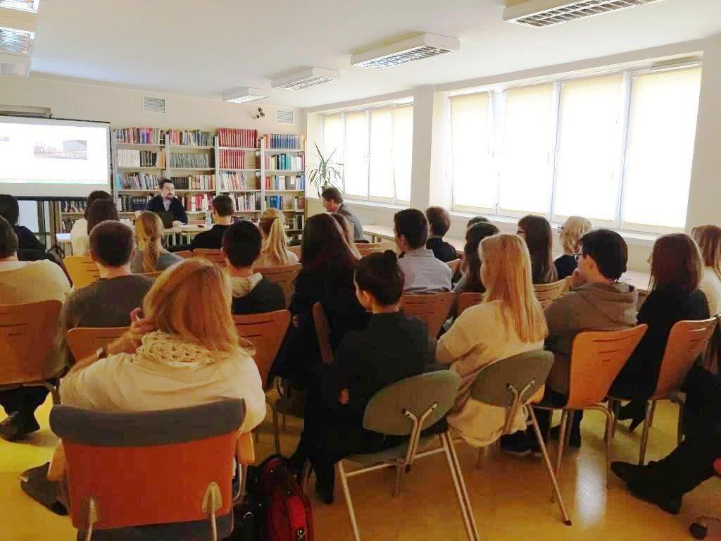 Koło Naukowe Germanistów PWSZ zorganizowało 18-go grudnia 2015 spotkanie z Michałem Szymkowiakiem, tłumaczem symutanicznym języka angielskiego i niemieckiego, pracującym w Parlamencie Europejskim i Komisji Europejskiej w Brukseli.