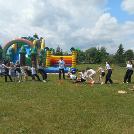 Uroczystość rozpoczęła się częścią oficjalną, którą poprowadziła jedna z naszych studentek. Następnie odbył się festyn, który dostarczył mnóstwo radości zarówno dzieciom, jak i dorosłym. Zabawę i pozytywną atmosferę zapewniły niezastąpione wolontariuszki – animatorki z ANS w Koninie, które przygotowały liczne atrakcje, takie jak: malowanie twarzy, wyścigi w workach, rzuty do celu oraz przeciąganie liny. Dzieci bawiły się doskonale, a uśmiechy nie znikały z ich twarzy przez cały czas trwania festynu. Opiekunką naszych studentów podczas wydarzenia była dr Magdalena Zając, adiunkt na Wydziale Nauk Humanistycznych i Społecznych, która czuwała nad organizacją i wspierała młodzież w ich działaniach.