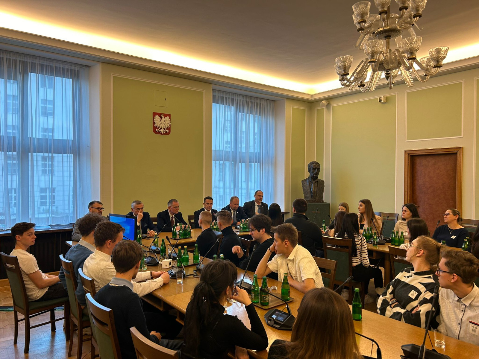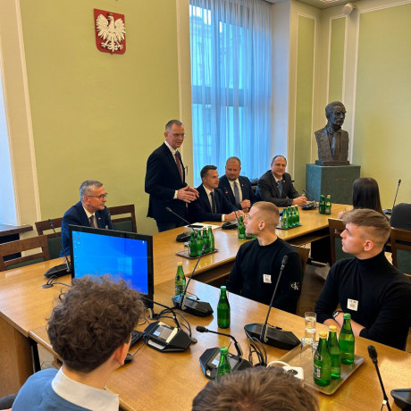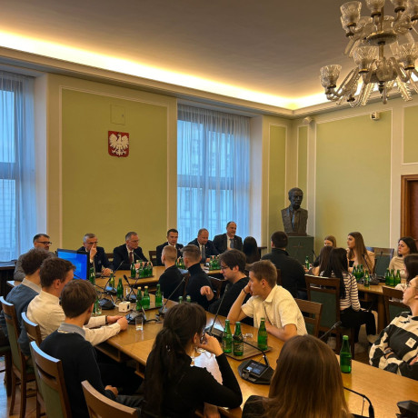Studenci z SKN „Bastion” - wraz z opiekunami dr. hab. Wojciechem Nowiakiem, prof. ANS, i dr. inż. Grzegorzem Milewskim - odwiedzili parlament RP, by spotkać się z posłami i wziąć udział w obradach Sejmu, a przy okazji zwiedzić gmach przy ul. Wiejskiej.