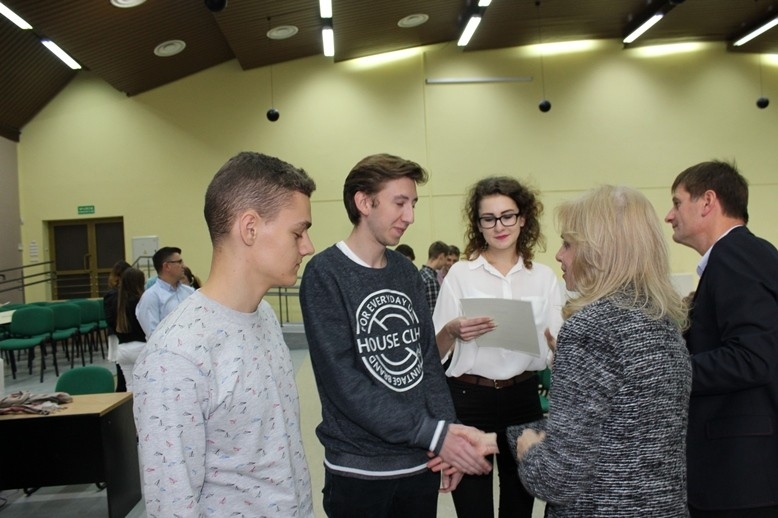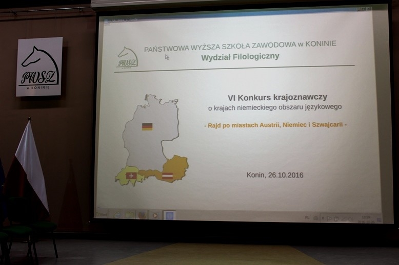 Koło Germanistów PWSZ w Koninie już po raz szósty zorganizowało dla uczniów szkół ponadgimnazjalnych konkurs krajoznawczy o krajach niemieckiego obszaru językowego. Do konkursu zgłosiło się 10 zespołów (składających się z 3 osób każdy) ze szkół ponadgimnazjalnych z Konina, Słupcy, Turku, Zagórowa i Kleczewa. Przybyłych do naszej uczelni uczniów oraz ich opiekunów, nauczycieli języka niemieckiego, powitali studenci oraz dr Anna Stolarczyk-Gembiak, dziekan Wydziału Filologicznego,