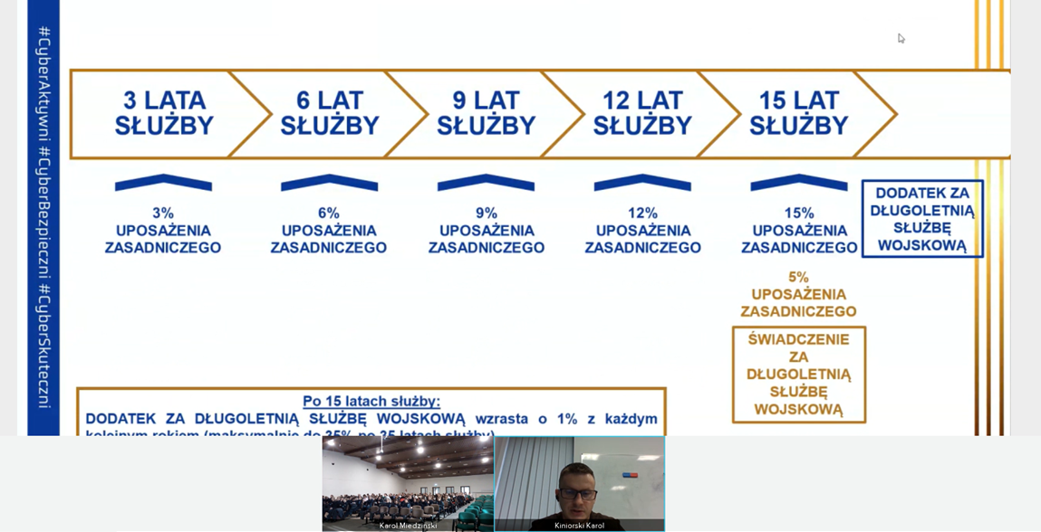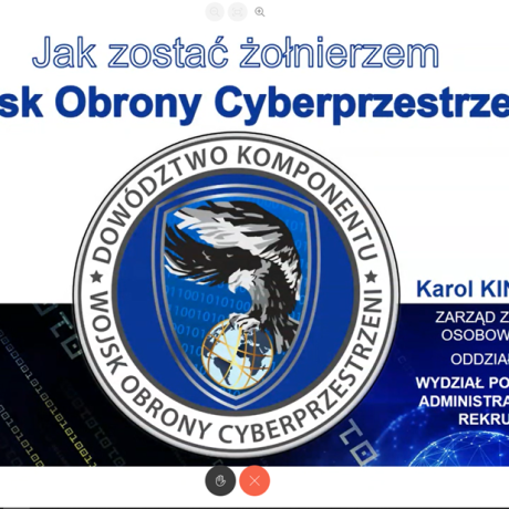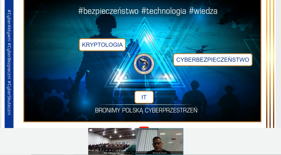 Szerzej mówił o tym podczas szkolenia „Jak zostać żołnierzem Wojsk Obrony Cyberprzestrzeni” Karol Kiniorski, przedstawiciel WOC. W webinarze uczestniczyli nasi studenci bezpieczeństwa wewnętrznego i kierunków technicznych, a także uczniowie klas mundurowych z Zespołu Szkół Centrum Kształcenia Ustawicznego w Koninie.