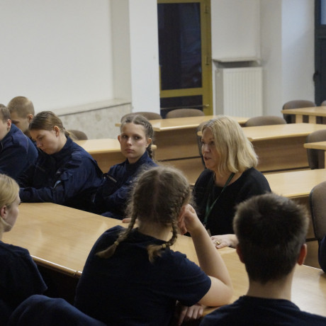 O kanałach sensorycznych i ich roli w komunikacji interpersonalnej traktował wykład i dyskusja po nim dla uczniów policyjnej klasy akademickiej z Zespołu Szkół Centrum Kształcenia Ustawicznego w Koninie.