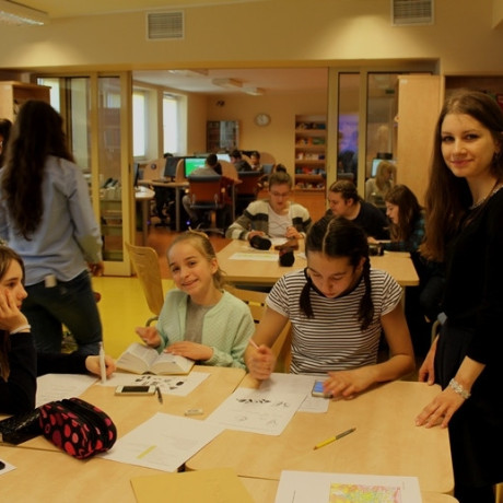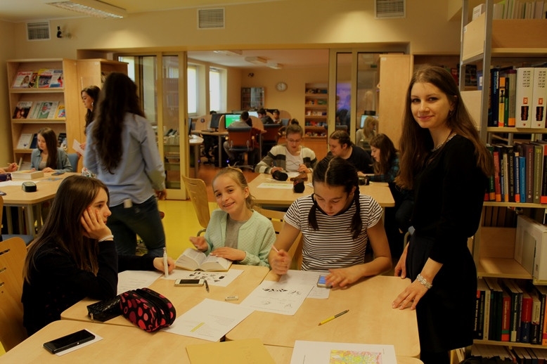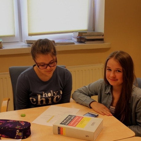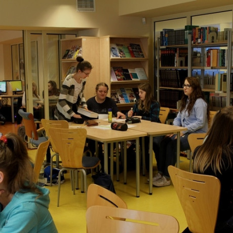 Panią doktor wsparły studentki II roku Filologii Germańskiej, które nadzorowały drużynowe zmagania językowe uczniów, pomagały w przygotowaniu prezentacji multimedialnych oraz przy prezentowaniu przygotowanego materiału. Dzięki uprzejmości pani dyrektor Biblioteki możliwe było zorganizowanie warsztatów w takiej formie, żeby uczniowie mogli korzystać zarówno z komputerów, jak i pozycji literatury niemieckojęzycznej Biblioteki PWSZ.