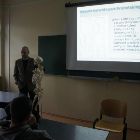 W murach uczelni powitała ich dr Edyta Bielik, prodziekan Wydziału Kultury Fizycznej i Ochrony Zdrowia. Następnie młodzież uczestniczyła w wykładzie z anatomii pt. „Sposoby badania wad postawy i zagrożenia”, który poprowadził dr Bartosz Chmielewski i zajęciach z pierwszej pomocy „Ratuj życie”, przygotowanych przez mgr Ewę Wojskunowicz.