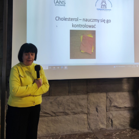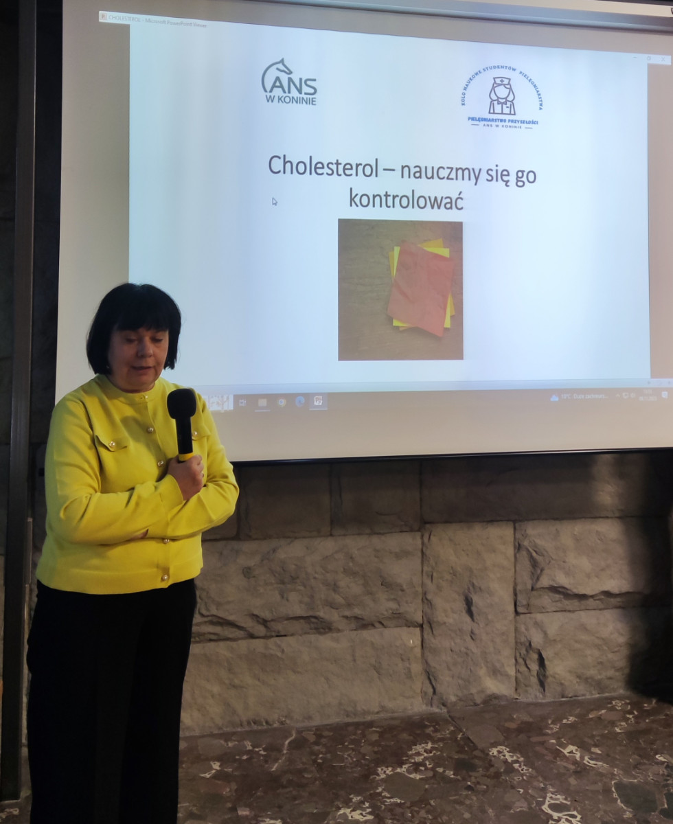 Podczas pierwszej części spotkania wygłoszono wykład „Cholesterol – nauczmy się go kontrolować”. Po nim przeprowadzono badania przesiewowe za pomocą pasków testowych wskazujących poziom cholesterolu.
