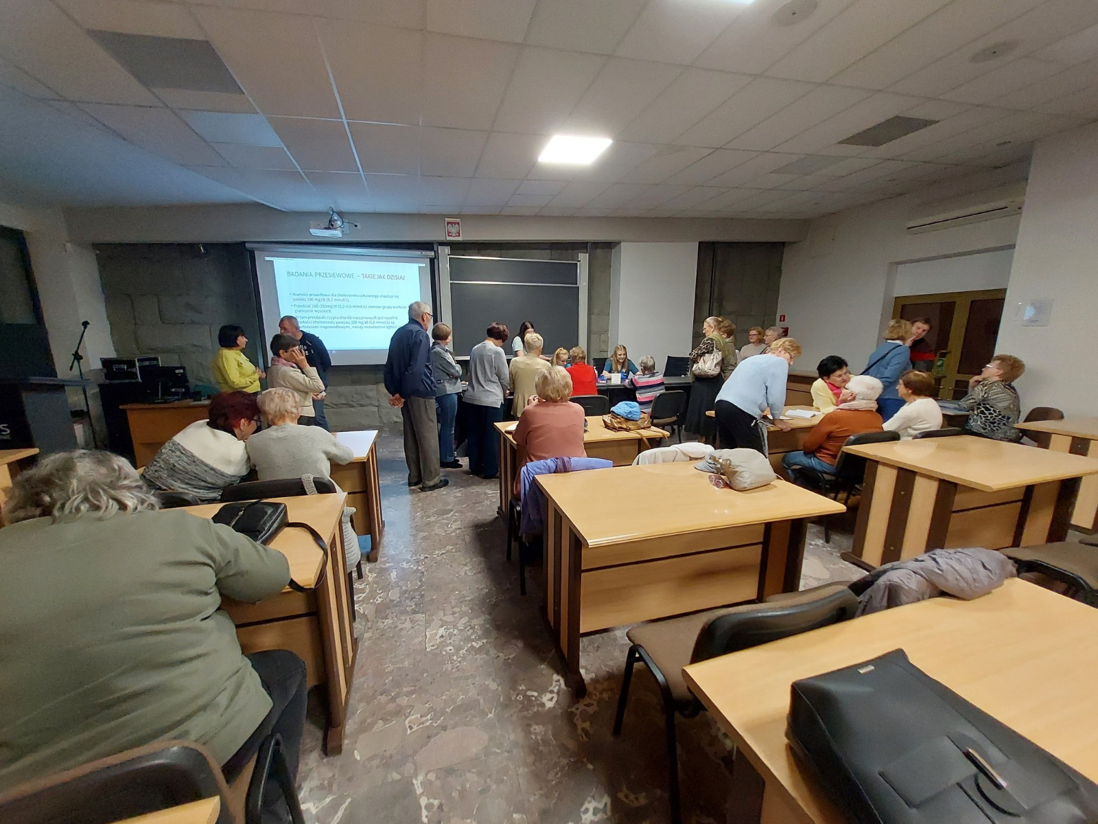 Członkowie Studenckiego Koła Naukowego Pielęgniarstwo Przyszłości wraz z opiekunem dr Aliną Roszak zorganizowali spotkanie dla słuchaczy Uniwersytetu Trzeciego Wieku z Sekcji Przyrodniczo-Medycznej.