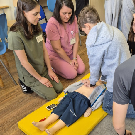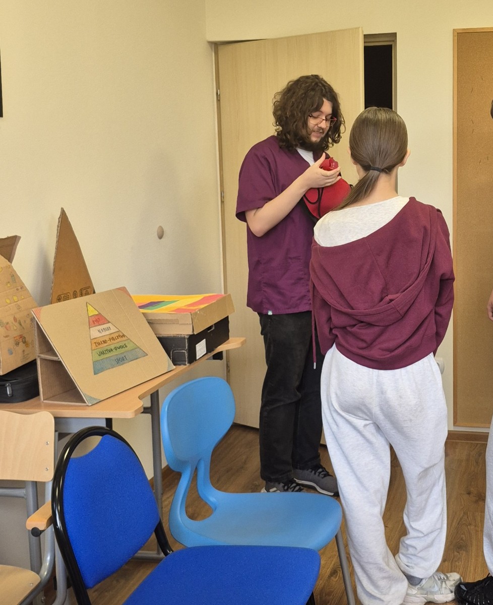 W dniu 05.11.2025 r. studenci Akademii Nauk Stosowanych w Koninie, z Koła Naukowego Pielęgniarstwo Przyszłości gościło w Szkole Podstawowej nr 11 im. Floriana Marciniaka, w której uczniowie z klasy VIII ćwiczyli czynności resuscytacyjno-krążeniowe. To ważne spotkanie, ponieważ pod sprawnym „okiem” studentów z kierunku Pielęgniarstwa uczniowie mogli w sposób bezpieczny przećwiczyć czynności, które w przyszłości mogą okazać się ważne podczas ratowania życia i zdrowia członków rodziny, jak i osób nieznanych. Najważniejsze to pokonać strach i uwierzyć we własne możliwości, czego studenci uczyli słuchaczy.