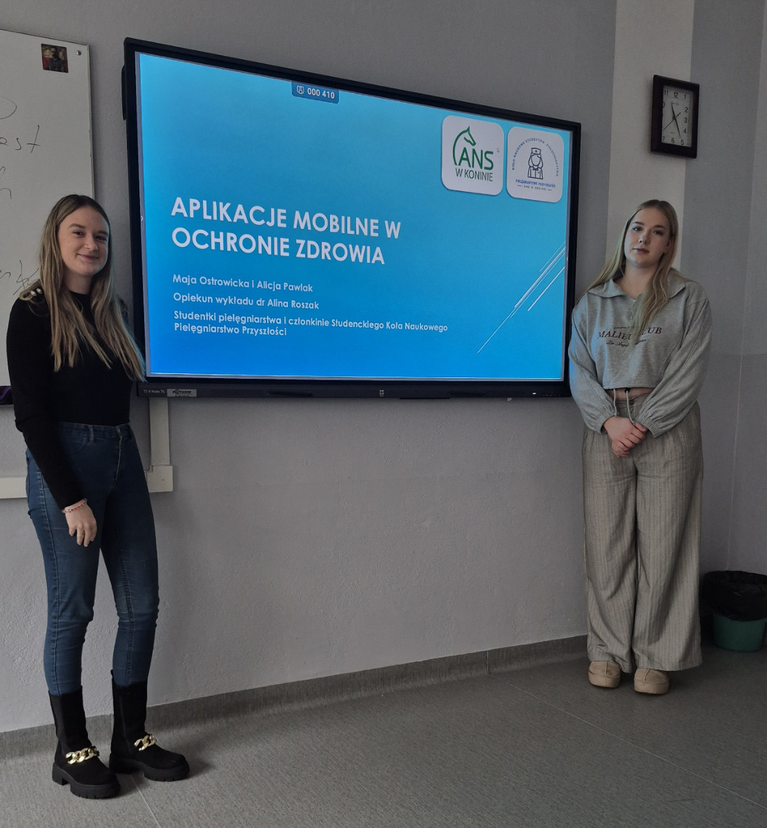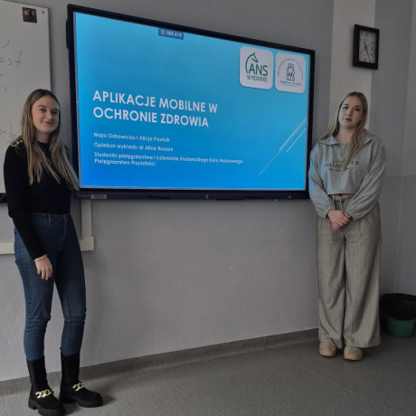 Zupełnie innej tematyce poświęciły swoje wystąpienie studentki Maja Ostrowicka i Alicja Pawlak z SKN „Pielęgniarstwo Przyszłości”. Wraz z opiekunką koła, dr Aliną Roszak, omówiły temat cyfryzacji w podmiotach leczniczych, a szczególnie działanie Internetowego Konta Pacjenta (IKP), umożliwiającego weryfikację usług dostępnych w aplikacji e-zdrowie. Krok po kroku pokazały sposób zakładania konta, następnie omówiły korzyści z jego użytkowania, takie jak szybki i spersonalizowany dostęp do opieki medycznej, wsparcie w chorobach przewlekłych czy dostępność 24/7, co pozwala oszczędzać czas. – Rozwój cyfryzacji w ochronie zdrowia jest procesem, którego nie da się zatrzymać, dlatego ucieszyło nas, że po wykładzie niektórzy słuchacze, korzystając ze wsparcia studentek, chętnie uczyli się praktycznego zakładania konta i obsługi aplikacji – podkreśliła dr Roszak.
