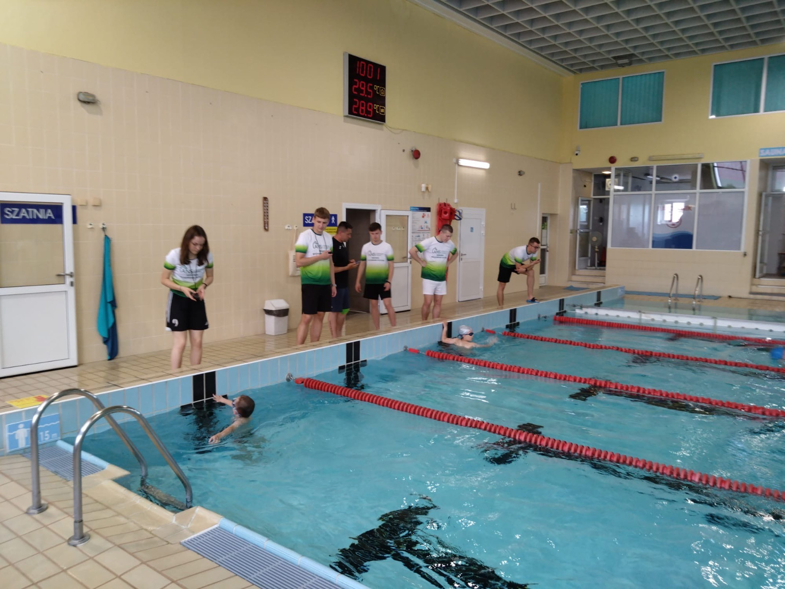 Studenci II roku wychowania fizycznego czuwali nad prawidłowym przebiegiem rywalizacji sportowej podczas Zawodów Pływackich z okazji Dnia Dziecka, które podsumowały cykl „ABC nauki pływania”.