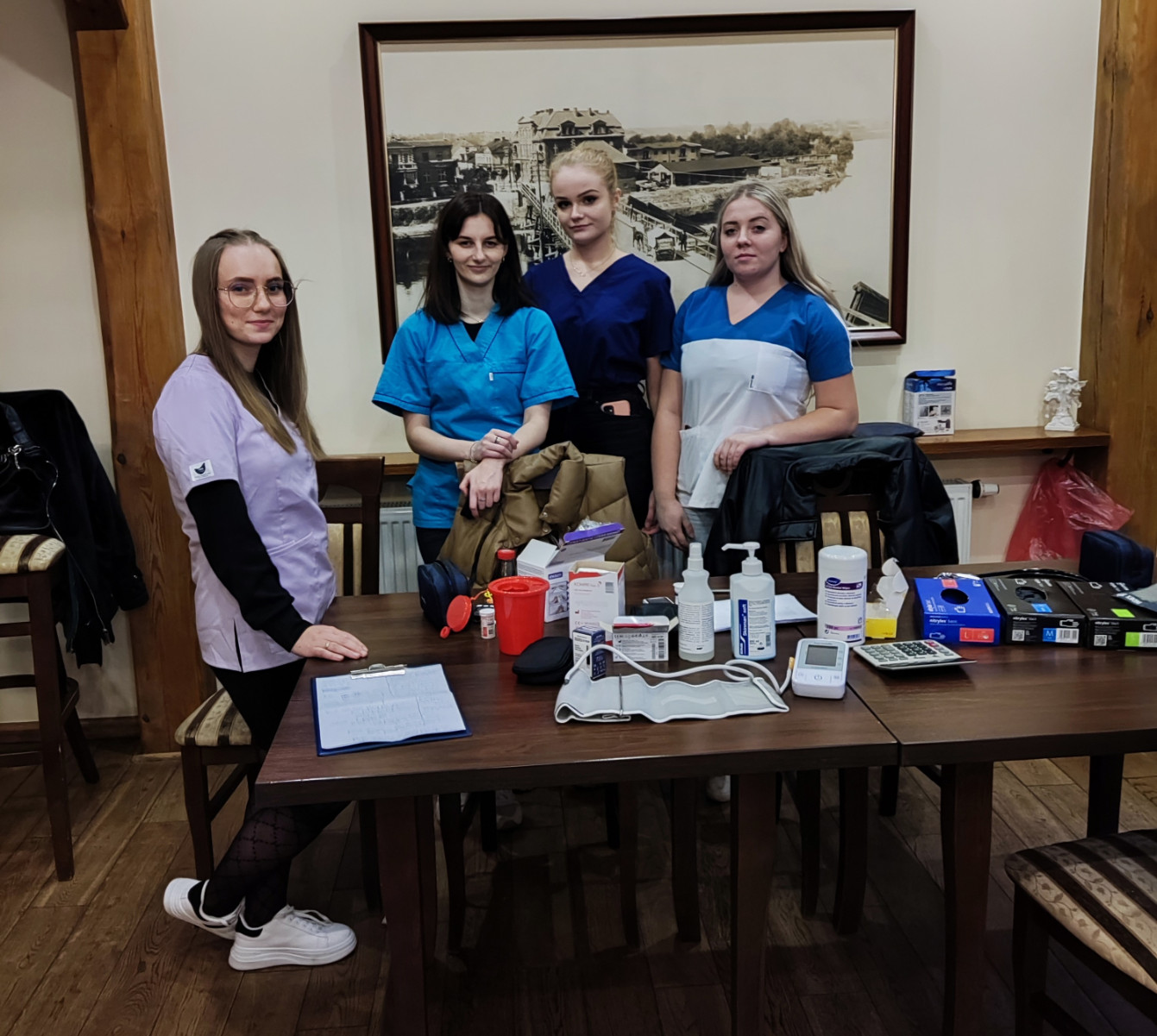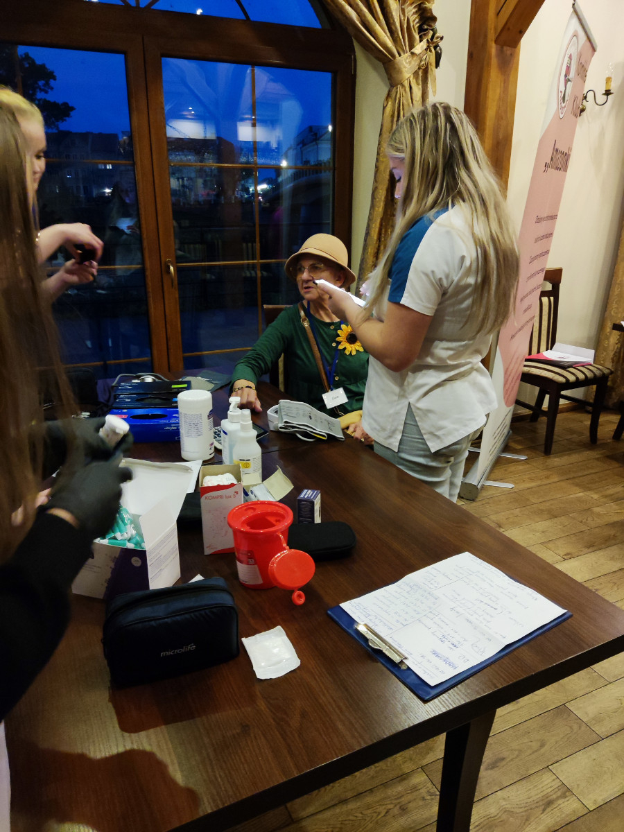 W czasie spotkania studentki wraz z opiekunami dr Aliną Roszak i mgr Jolantą Janiak wykonywały uczestniczkom badania przesiewowe, takie jak ocena poziomu glukozy, pomiar ciśnienia i tętna oraz poziom saturacji, a odważnym obliczano BMI.