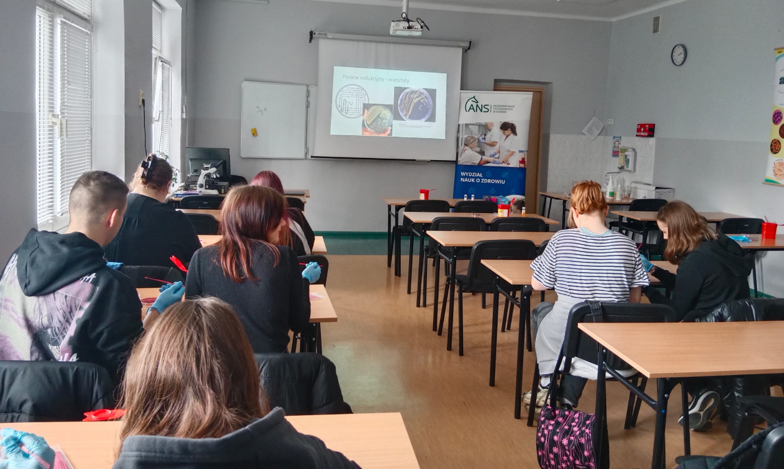 O tym, jak fascynująca jest mikrobiologia, szczególnie gdy samemu można zagłębić się w odkrywanie życia mikroorganizmów, przekonali się przyszli technicy żywienia z Zespołu Szkół Budownictwa i Kształcenia Zawodowego w Koninie. W ten świat wprowadziła ich dr n. med. Ewelina Drela, adiunkt na Wydziale Nauk o Zdrowiu.