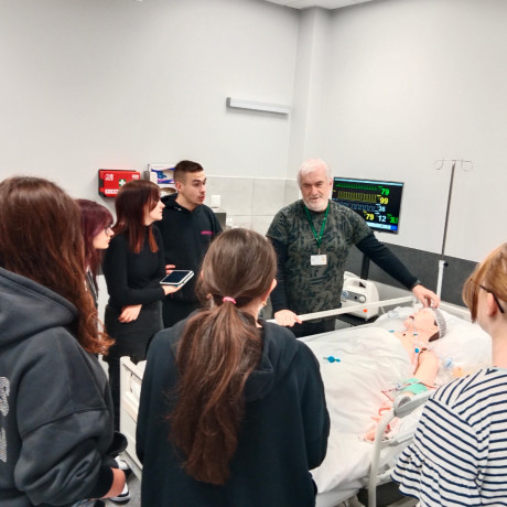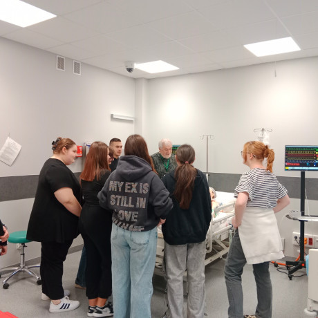 Podczas pobytu na uczelni (7 kwietnia) uczniowie zwiedzili również Monoprofilowe Centrum Symulacji Medycznej, gdzie obejrzeli specjalistyczny sprzęt wykorzystywany podczas kształcenia, symulatory dorosłych i dzieci. Przedstawiono im główne założenia symulacji medycznej, dzięki czemu studenci pielęgniarstwa mogą dobrze przygotować się do wykonywania swojego zawodu. – Szczególną uwagę poświęcono demonstracji symulacji wysokiej wierności, stanowiącej istotny element praktycznej nauki – dodała dr Drela.