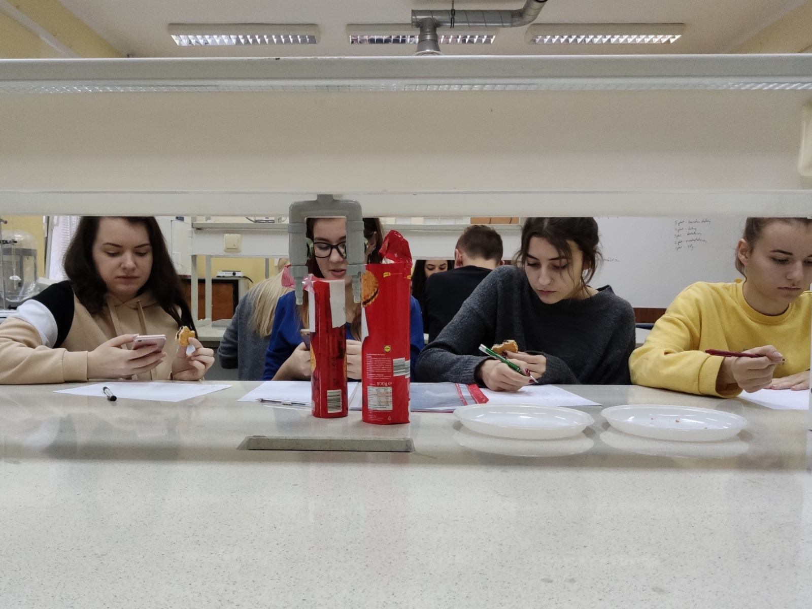 26 listopada 2019 roku w Katedrze Żywienia i Aktywności Fizycznej Wydziału Nauk o Zdrowiu pracownicy kierunku dietetyka przygotowali wykłady i warsztaty otwarte, w których wzięła udział młodzież z I Liceum Ogólnokształcącego w Koninie. Wydarzenie otworzyło przywitanie młodych gości przez menadżer kierunku dietetyka dr n. med. Agnieszkę Andrearczyk-Woźniakowską, która pokrótce zaprezentowała nasz Wydział. Kolejnym punktem programu był wykład dr n. farm. Agnieszki Saran-Jagodzińskiej pt. „Znaczenie wapnia i witaminy D w rozwoju młodzieży”. Po wykładzie uczniowie wzięli udział w warsztatach: „Wpływ pH napojów spożywczych na stan zdrowia jamy ustnej” oraz „Ocena jakości produktów spożywczych metodą skalowania – analiza sensoryczna” (przygotowanych przez dr n. farm. Agnieszkę Saran-Jagodzińską i dr inż. Orinę Surmę). Uczniowie wykonywali szereg prostych doświadczeń chemicznych z wykorzystaniem popularnych produktów i napojów takich jak: płyny do jamy ustnej, różnego rodzaju herbaty, kawa, mleko, świeże soki, napoje energetyczne, woda kranowa, jogurty. Zajęciom praktycznym towarzyszyła dyskusja na temat składu badanych produktów i ich wpływu w szczególności na rozwój erozji i próchnicy zębów. Przedyskutowano też wskazówki dotyczące zapobiegania chorobom zębów. Uczniowie mieli też okazję zapoznać się z metodami skalowania i oceny jakości produktów spożywczych. Mamy nadzieję, że ta forma popularyzacji nauki i edukacji spodobała się naszym Młodym Gościom i że będzie nam dane zobaczyć się z nimi jeszcze niejednokrotnie w ławach Uczelni – tym razem nie w charakterze słuchaczy lecz studentów.