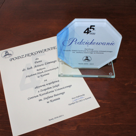Zespół Szkół Centrum Kształcenia Ustawicznego im. Stefana Batorego w Koninie, partner ANS w Koninie, obchodzi w tym roku 45-lecie działalności. Z tej okazji 20 kwietnia odbyła się uroczysta gala jubileuszowa, na której naszą Uczelnię reprezentował rektor, dr hab. Artur Zimny, prof. ANS. Uroczystość jubileuszowa była okazją do wspomnień, występów szkolnych zespołów oraz wręczenia podziękowań i wyróżnień. Również rektor znalazł się w gronie osób wyróżnionych i odebrał statuetkę okolicznościową oraz podziękowanie za wieloletnią, aktywną współpracę ze Szkołą.