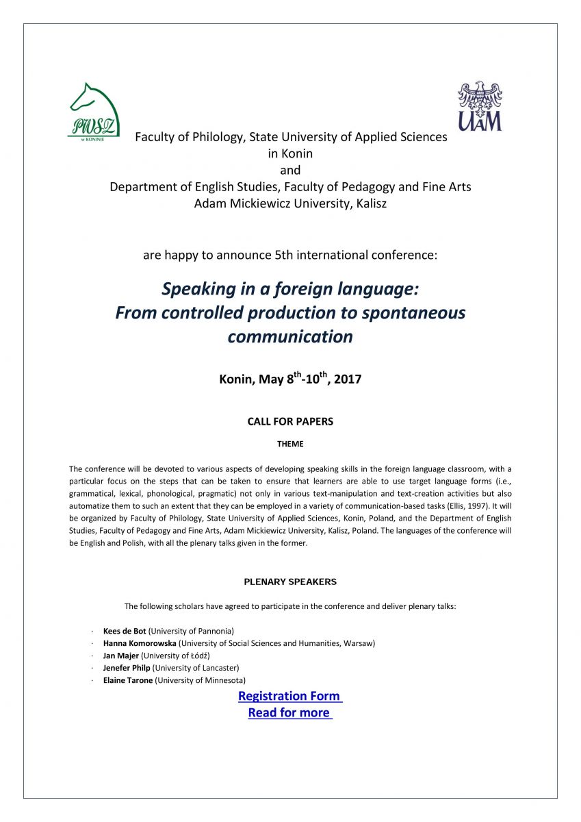 Speaking in a foreign language: From controlled production to spontaneous communication - konferencja
