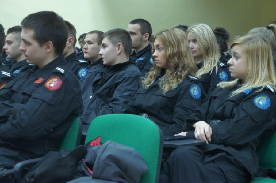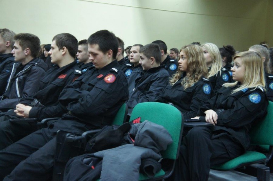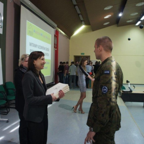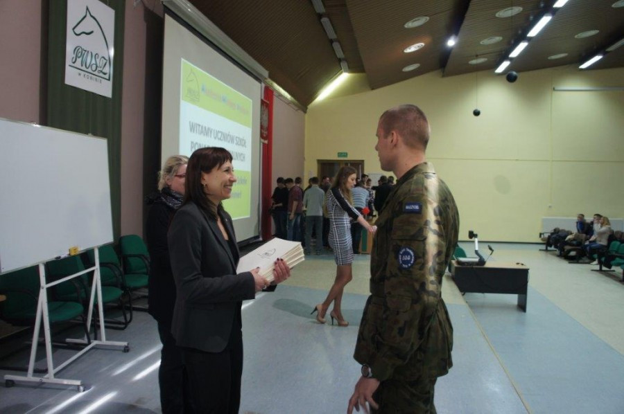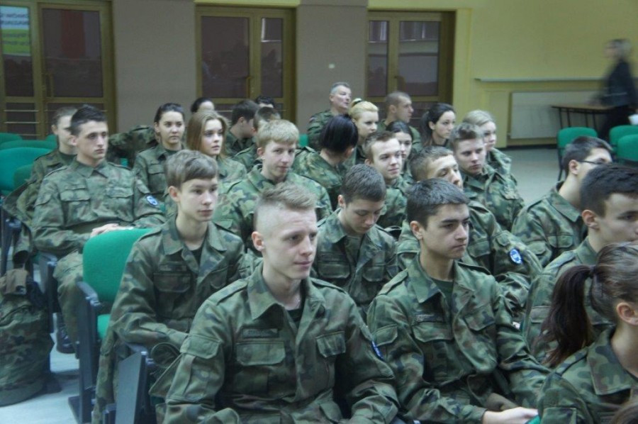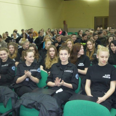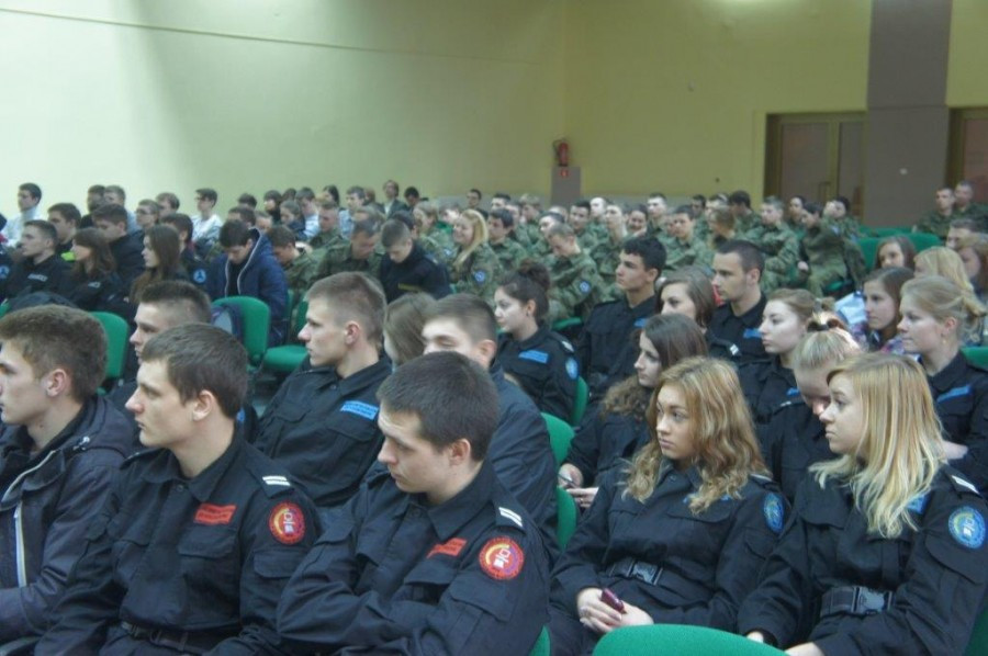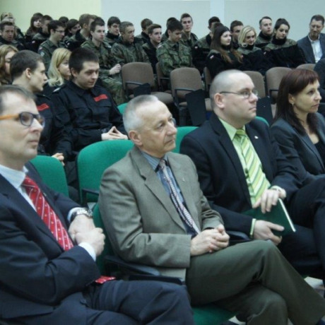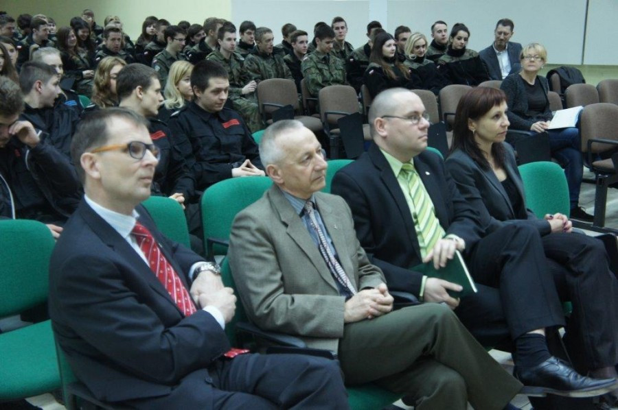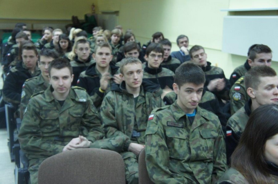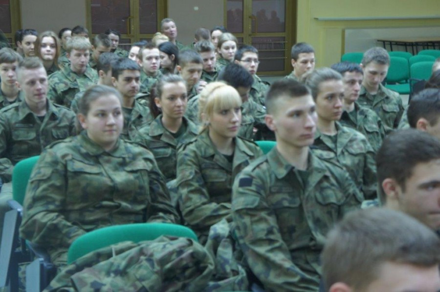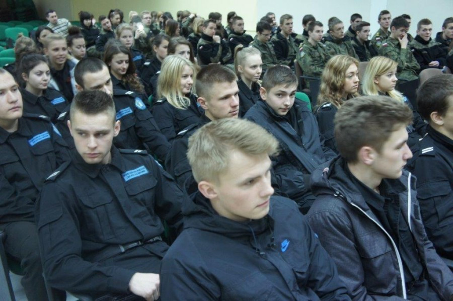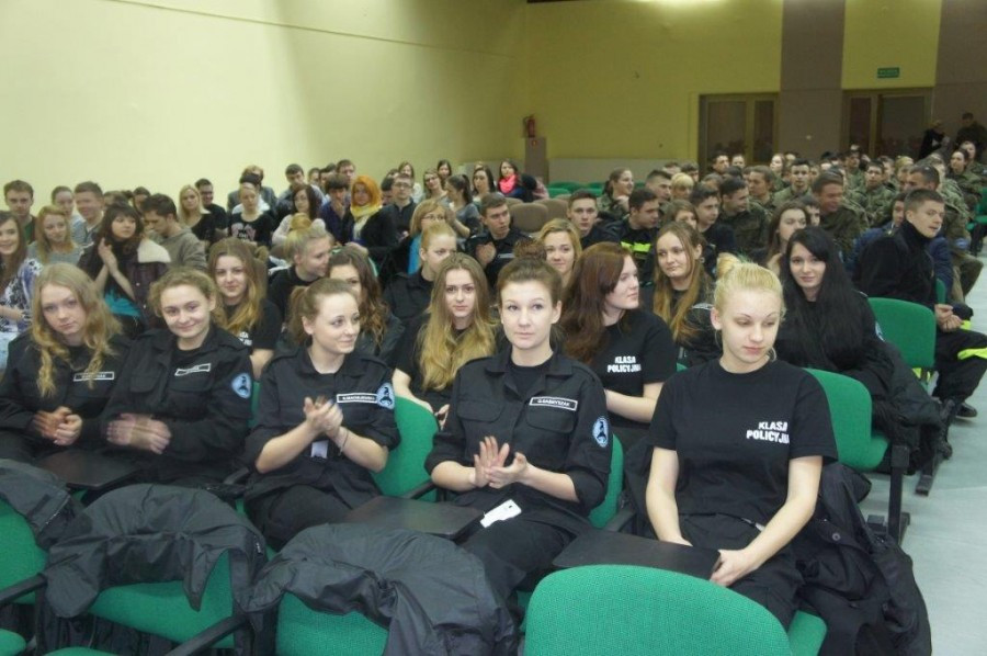 O 9.30 krzesła w uczelnianej auli zajęli uczniowie w mundurach. Jedni w czarnych, inni w stalowych, a jeszcze inni w moro. Mimo kilkuminutowego opóźnienia, gwar nie narastał. Widać dyscyplina przynależna formacjom mundurowym zrobiła swoje.