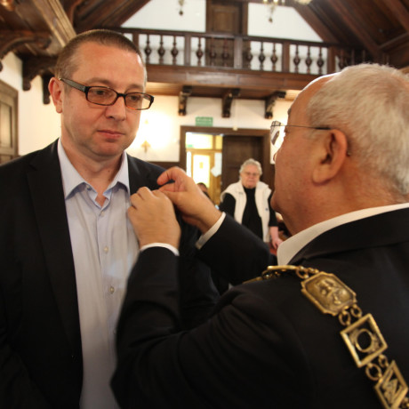 W imieniu Międzynarodowej Kapituły aktu dekoracji srebrną odznaką Ambasadora Farmacji dokonał dr Jerzy Jambor, prof. ANS w Koninie, Kawaler Europejskiego Lauru Farmacji, a certyfikat tytułu i medalu wręczył prof. dr hab. Aleksander Mazurek, Ambasador Farmacji. Laudację wygłosiła dr Lidia Czyż z Uniwersytetu Rzeszowskiego.