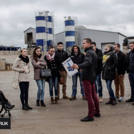 W zakładzie mieli okazję poznać zasady jego funkcjonowania, proces produkcji kostki brukowej, a także historią tworzenia i rozwoju firmy. Przewodnikiem młodych przedsiębiorców był Adrian Kaczmarek, doradca klienta w firmie GOLD-BRUK.
