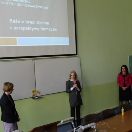 Autorką wykładu (26 kwietnia) była dr hab. Eliza Karmińska, prof. UAM, również autorka najnowszego przekładu „Baśni braci Grimm”, która opowiadała o nich właśnie z perspektywy tłumacza.