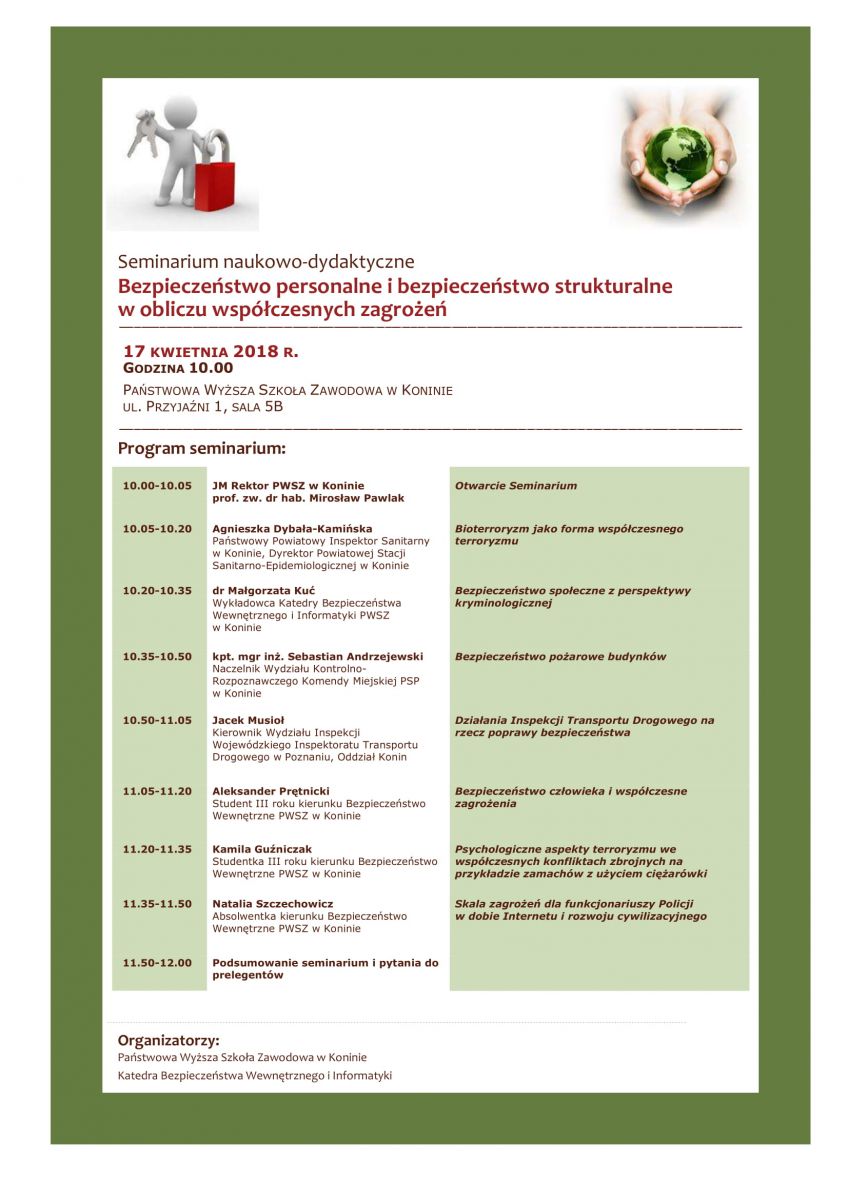 Katedra Bezpieczeństwa Wewnętrznego i Informatyki zaprasza do udziału w Seminarium Bezpieczeństwo personalne i bezpieczeństwo strukturalne w obliczu współczesnych zagrożeń