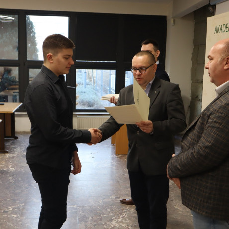 Zaświadczenia o umiejętności lutowania uczniom dwóch klas – mechatronicznej i urządzeń i systemów energetyki odnawialnej – z Zespołu Szkół Górniczo-Energetycznych w Koninie wręczył dr hab. Artur Zimny, prof. ANS w Koninie i jej rektor.