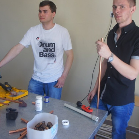 A uczestnicy akademii mogli nie tylko zobaczyć jak klei się rury z PVC i CPVC, gnie i zgrzewa rury z PP oraz lutuje rury miedziane, bo każdy materiał wymaga innego sposobu trwałego łączenia, ale mogli spróbować tych czynności sami, choć pod okiem prowadzącego zajęcia i studentów inżynierii środowiska.