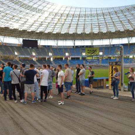 Naszą wycieczkę zamykało zwiedzanie toruńskiej Moto Areny, gdzie mogliśmy porozmawiać z kierownikiem budowy. Dzięki temu dowiedzieliśmy się wielu ciekawych rzeczy na temat rozwiązań konstrukcyjnych tej budowli.
