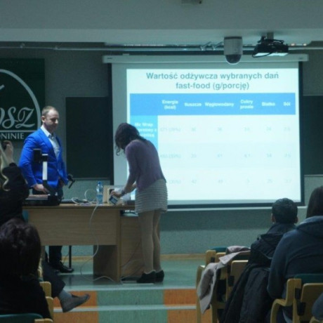 Młodzież wysłuchała kilku ciekawych wykładów: „Slow-food kontra fast-food jako alternatywny styl żywienia w krajach rozwiniętych” (dr inż. Krzysztof Dziedzic); „Dietetyk –zawód medyczny z przyszłością” (prof. Grzegorz Mielcarz); „Dieta o niskim indeksie glikemicznym” (mgr dietetyki Joanna Tomczewska) oraz obejrzała trzy prezentacje przygotowane przez studentów dietetyki. W laboratorium chemii żywności odbyły się praktyczne ćwiczenia pomiaru węglowodanów w napojach energetyzujących a następnie zajęcia pt. „Ratuj życie” z udzielania pierwszej pomocy poprowadziła mgr Ewa Wojskunowicz.