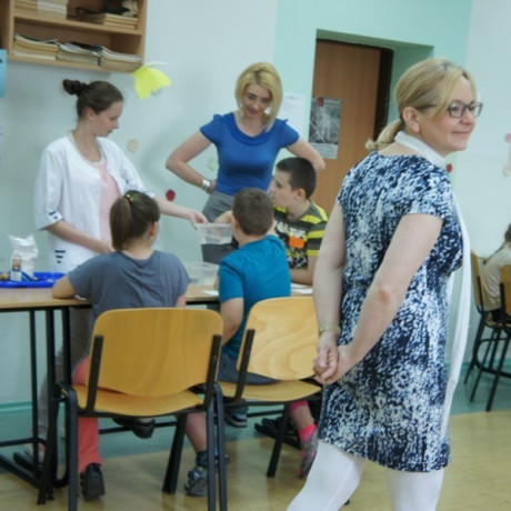 Dzieci z Turku gościły na Wydziale Społeczno-Humanistycznym 13 czerwca. Zajęcia dla nich przygotowali wykładowcy z Zakładu Pedagogiki. Uczniowie, podzieleni na trzy grupy warsztatowe, uczestniczyli naprzemiennie w zajęciach artystycznych, językowo-literackich i przyrodniczych. Niewątpliwą atrakcją było miejsce tego spotkania – główna aula Centrum Wykładowo-Dydaktycznego. Przy okazji maluchy zwiedziły cały budynek CW-D, zajrzały w różne zakamarki.
