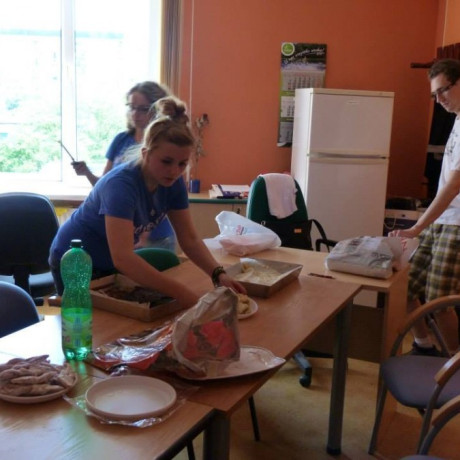 Dla zmęczonych i osłabionych pracą uczestników studenci przygotowali mały poczęstunek, a dla najdzielniejszych i najbardziej zaangażowanych, czyli także dla wszystkich – drobne upominki.