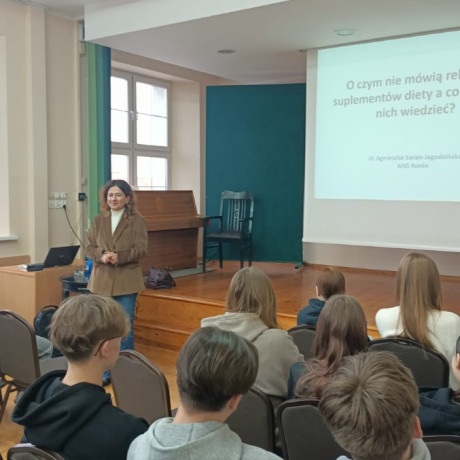 Dwa wykłady, jeden o nadużywaniu napojów energetyzujących, drugi o suplementach diety przygotowała dla uczniów Zespołu Szkół Ekonomicznych w Słupcy dr Agnieszka Saran-Jagodzińska, adiunkt na Wydziale Nauk o Zdrowiu.