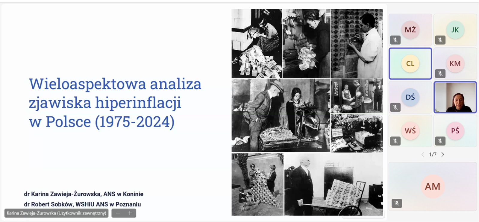 - dr Karina Zawieja-Żurowska, która z dr. Robertem Sobkowem, prof. WSHiU z Akademii Nauk Stosowanych w Poznaniu, wystąpiła z prelekcją „Wieloaspektowa analiza zjawiska hiperinflacji w Polsce na przestrzeni ostatnich 50 lat (1975-2024)”,
