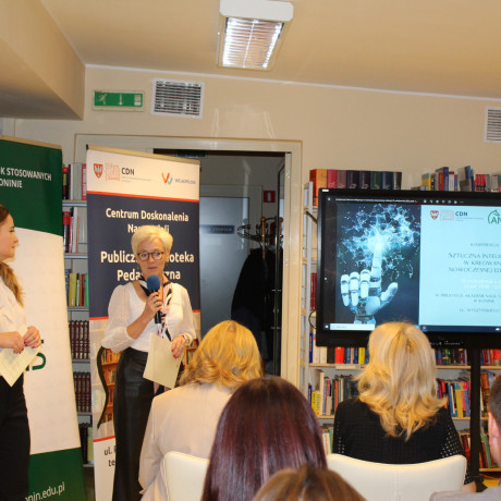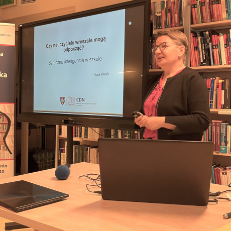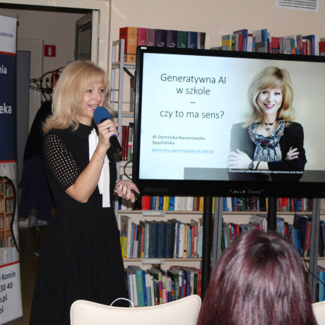 – Sztuczna inteligencja to nie jest nowy temat, współpracujemy z nią od lat, przywołać tu można nawigację, aparaty w telefonach, translatory tekstów — podkreślała dr Dominika Kaczorowska-Spychalska, dyrektor Centrum Inteligentnych Technologii Wydziału Zarządzania Uniwersytetu Łódzkiego, podczas wykładu „Generatywna AI w szkole — czy to ma sens?” — AI miała nas zastępować w czynnościach nudnych i żmudnych, jednak od pewnego czasu może nas już zastąpić w działaniach kreatywnych, napisać wiersz, esej, namalować obraz, a nawet naśladować emocje – wyjaśniała dalej. Wspomniała również o bocie z wizerunkiem i głosem zmarłej osoby, który może wchodzić w interakcję z otoczeniem. Takie zastosowanie AI w naszej kulturze oburza, ale, jak podkreśla dr Kaczorowska-Spychalska, przesuwają się granice i to, co dzisiaj jest kontrowersyjne, za jakiś czas stanie się powszechne.
