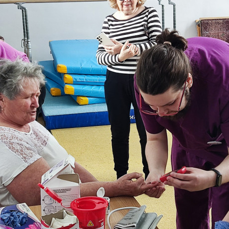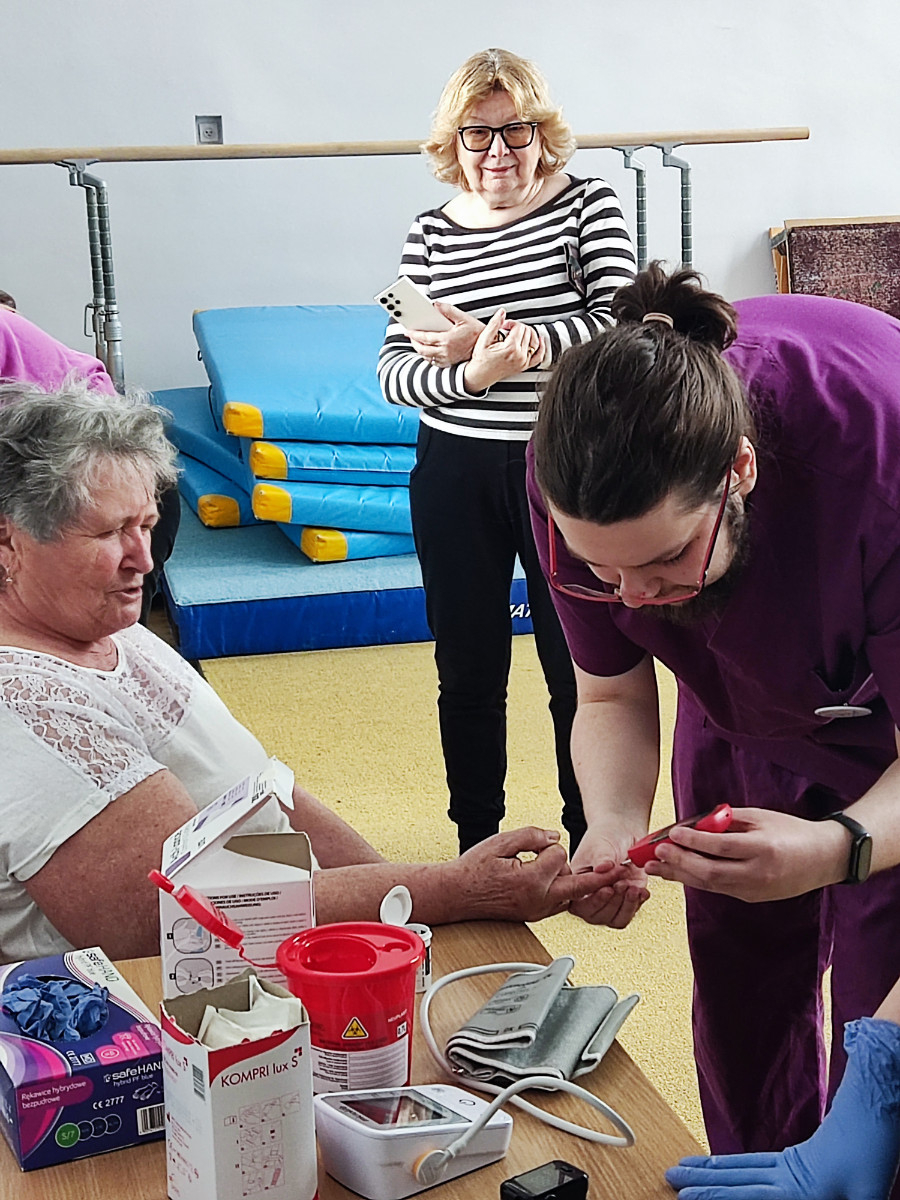 W sali gimnastycznej ANS w Koninie 9 kwietnia odbyły się wspólne ćwiczenia studentów i osób chorych na cukrzycę. – To doświadczenie naukowe dla studentów, bowiem przed rozpoczęciem ćwiczeń wykonali badania określające poziom glukozy, wysokość tętna, ciśnienia i saturacji, po czym powtórzyli je po ukończeniu zestawu intensywnych ćwiczeń – wyjaśnia dr Alina Roszak, menedżer kierunków zdrowie publiczne oraz pielęgniarstwo II st. I dodaje, że akcja cieszyła się dużym zainteresowaniem, było wiele radości i wszyscy świetnie się bawili, czego dowodem są zdjęcia.