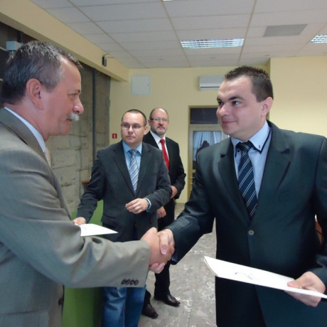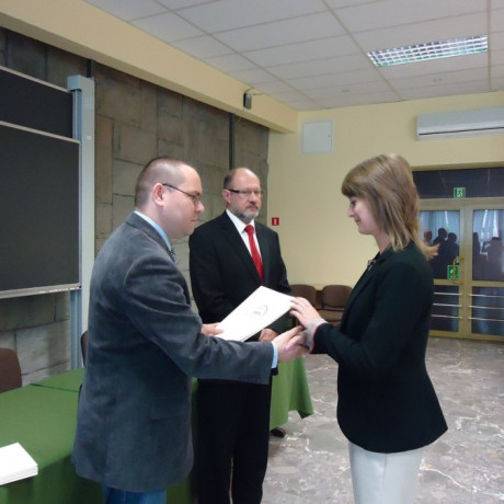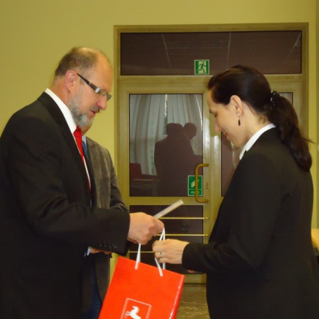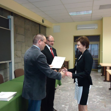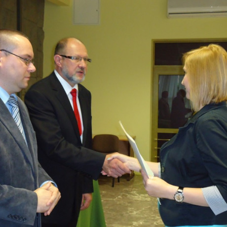 Dokumenty wręczał dr Artur Zimny, dziekan Wydziału Społeczno-Technicznego, a zarazem pełnomocnik rektora ds. studiów podyplomowych, dr Jerzy Ciupa, kierownik studiów oraz mgr Marek Zawidzki, sekretarz miasta Konina.