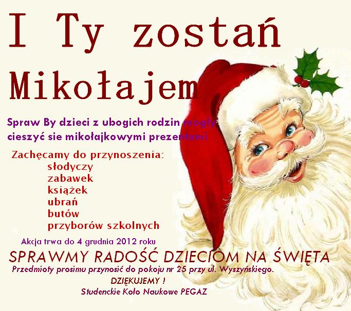 Studenckie Koło Naukowe PEGAZ organizuje akcję „I Ty zostań Mikołajem”