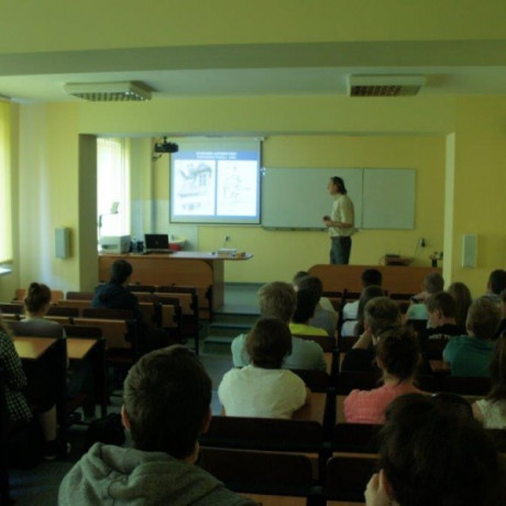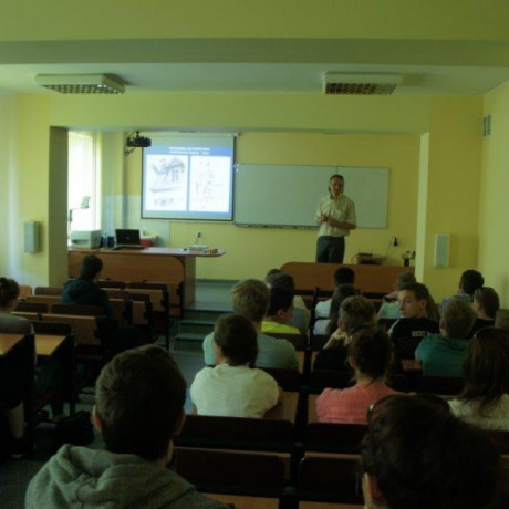 Wykład „Rysunek odręczny akademicki, czyli jak powstaje ładny obrazek”, a po nim zajęcia warsztatowe „Teoria perspektywy w zastosowaniu przeprowadził dr inż. arch. Krzysztof Borowski. – Najpierw przedstawiłem im teoretyczne zasady powstawania i oceny rysunków, by potem mogli spróbować zrobić go sami. Robili to pierwszy raz w życiu – opowiada dr Borowski. Młodzież z Kleczewa rysowała więc najprostszą formę, czyli pudełko, w perspektywie. Rysowanie to umiejętność niezbędna w zawodzie inżyniera, warto więc było poznać podstawy, nim podejmie się w przyszłości decyzję o wyborze zawodu.