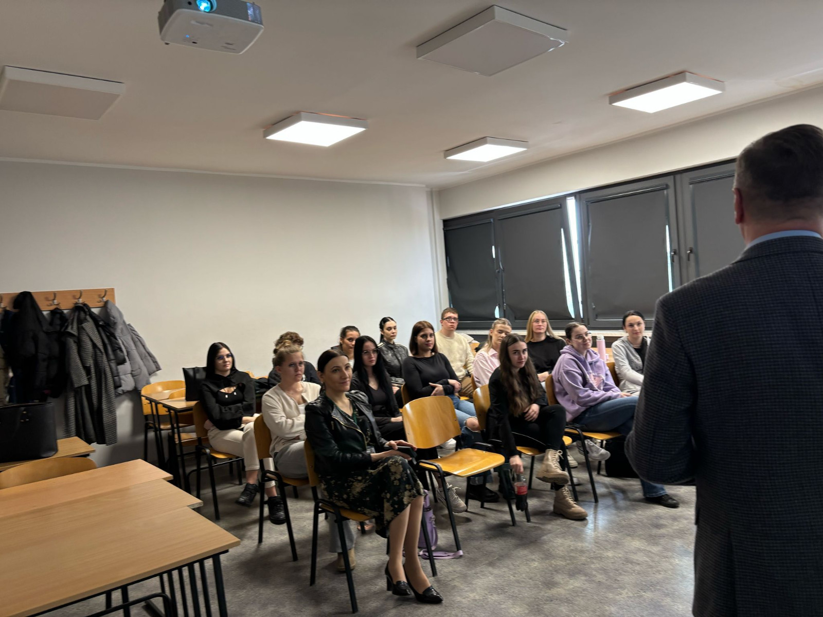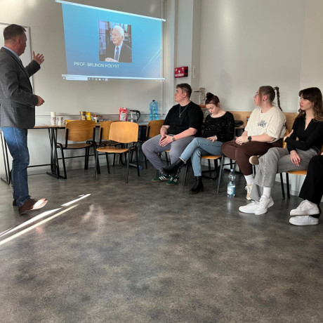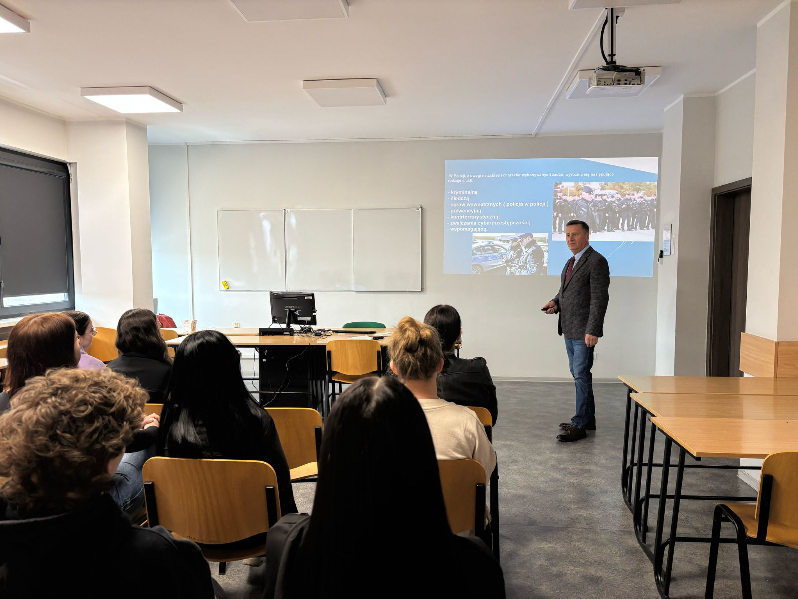 Marek Tyrański na wstępie scharakteryzował pracę w wydziałów kryminalnych, a więc zakres obowiązków funkcjonariuszy, specyfikę działań operacyjnych, współpracę z instytucjami zajmującymi się resocjalizacją i pomocą społeczną. Podkreślił znaczenie współpracy międzysektorowej, czyli koordynację działań między policją, pedagogami, kuratorami sądowymi i innymi instytucjami resocjalizacyjnymi. Zwrócił też uwagę na rolę edukacji i profilaktyki w przeciwdziałaniu przestępczości. Jak zwykle największą ciekawość wzbudziła analiza konkretnych sytuacji kryminalnych związanych z młodzieżą i osobami zagrożonymi wykluczeniem społecznym oraz omówienie procedur postępowania, jakie podejmuje policja z uwzględnieniem podejścia resocjalizacyjnego. Nie zabrakło również informacji na temat stresu związanego z pracą w służbach mundurowych, problemów etycznych i moralnych, a także podkreślenia konieczności budowania zaufania w relacjach z osobami resocjalizowanymi.