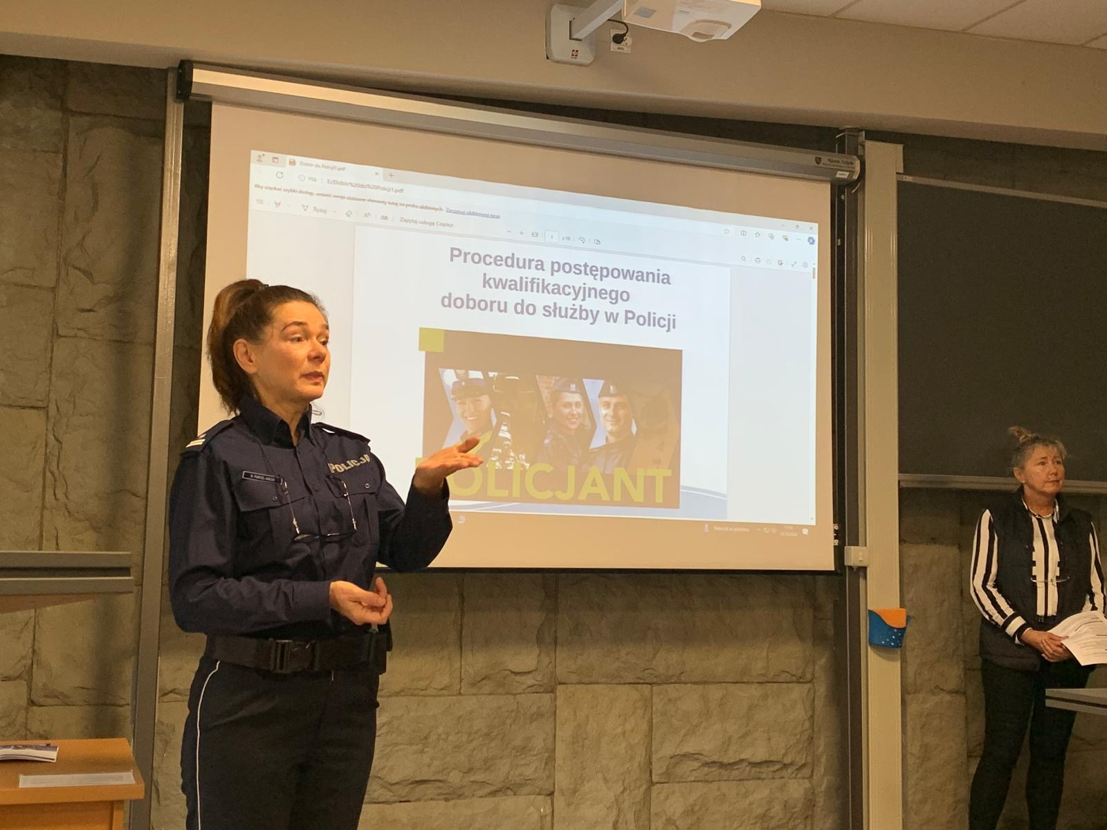 Szczegółowy proces kwalifikacji do służby w policji mieli okazję poznać studenci bezpieczeństwa wewnętrznego. 24 października uczelnię odwiedził czteroosobowy zespół z Komendy Miejskiej Policji w Koninie. Stanowiły go podinsp. Renata Purcel-Kalus oraz Małgorzata Dużyńska z Zespołu ds. Kadr i Szkolenia Wydziału Ogólnego, a także asp. Maria Baranowska oraz mł. asp. Sylwia Król z Zespołu ds. Komunikacji Społecznej Wydziału Ogólnego.