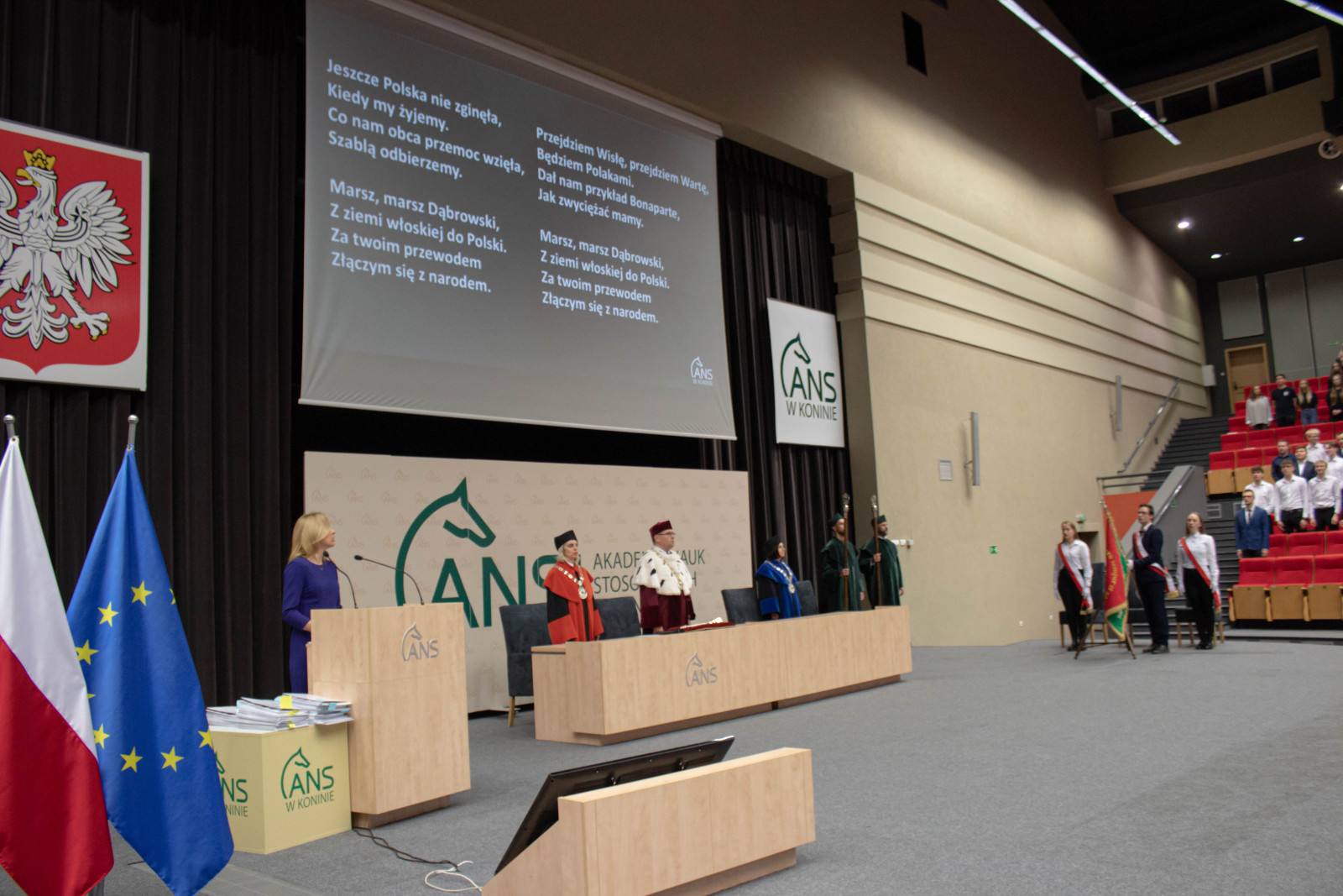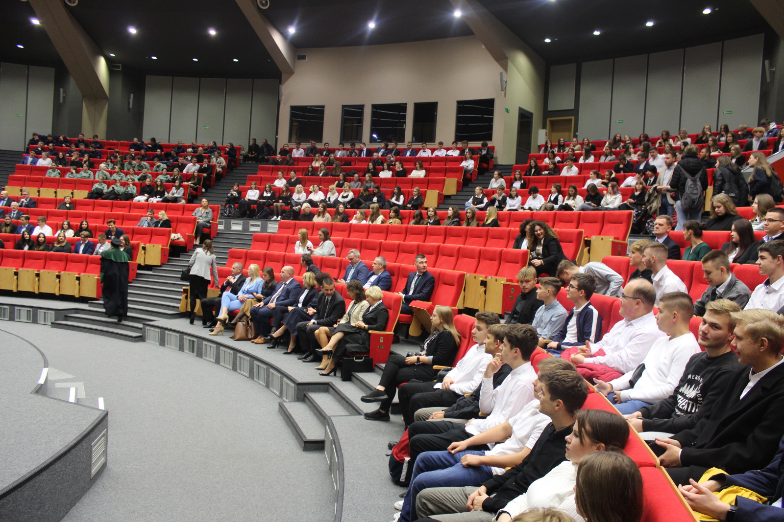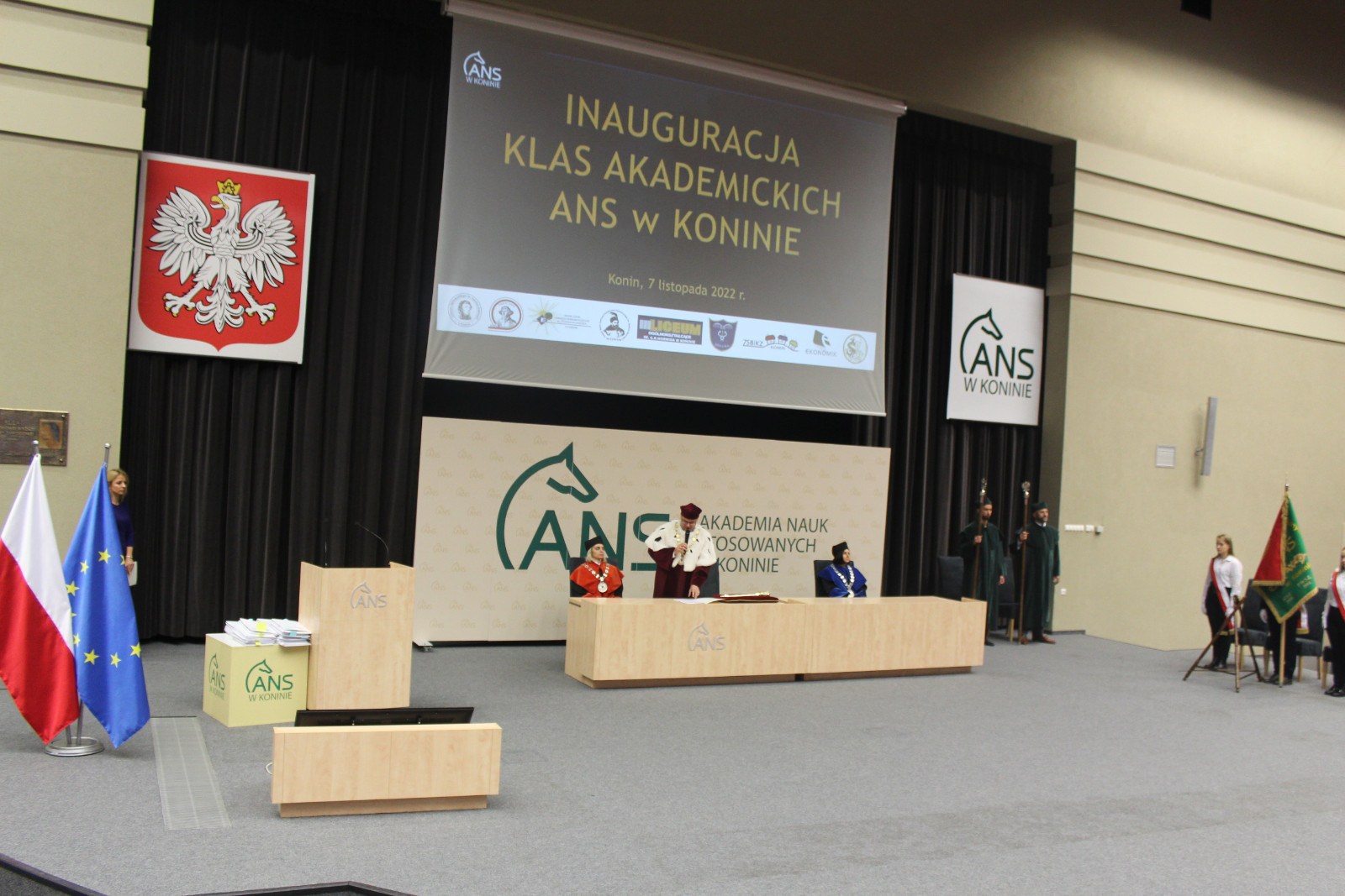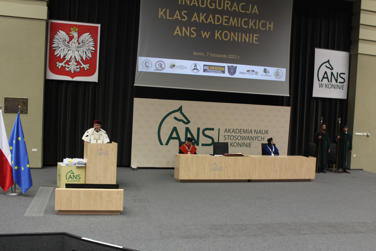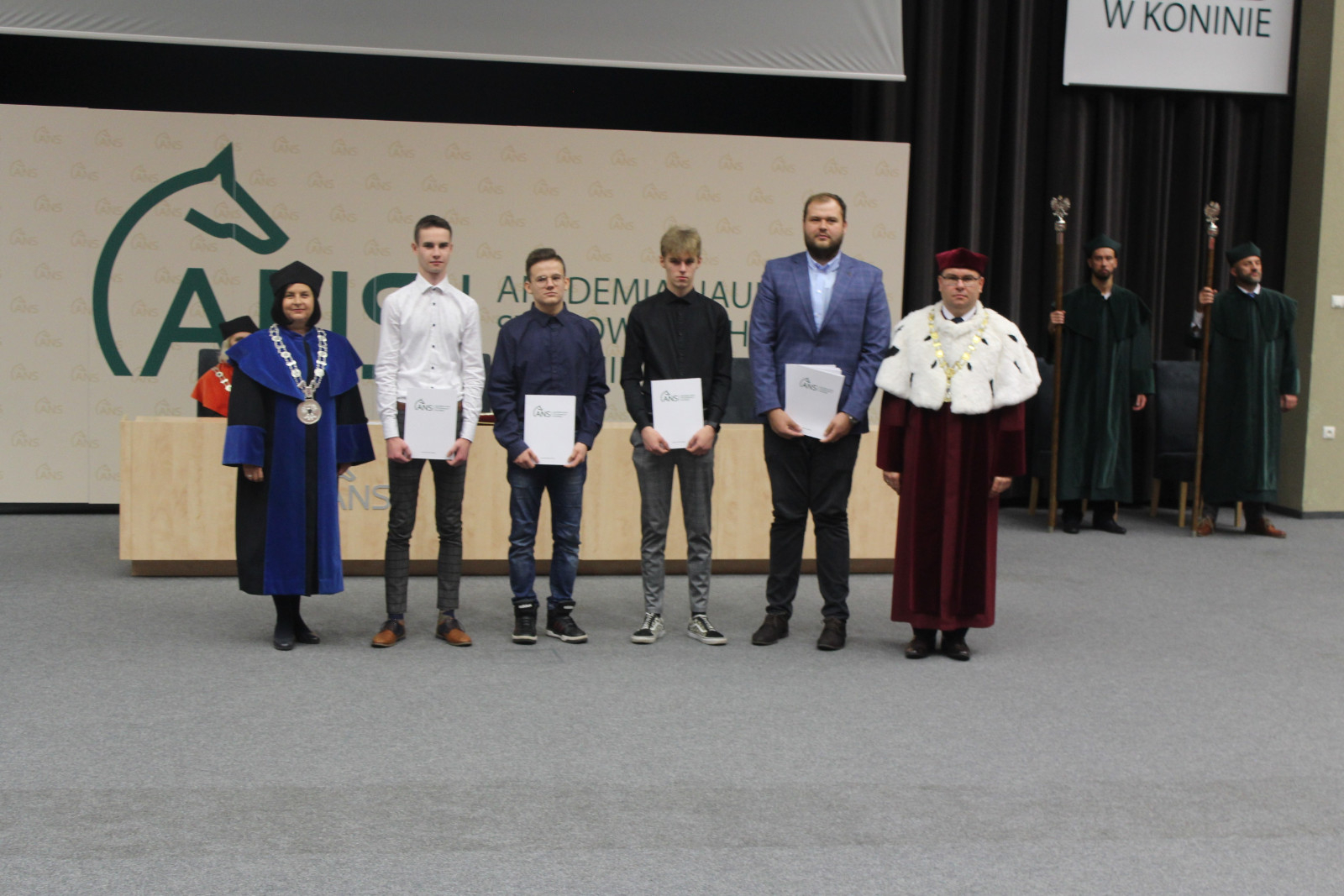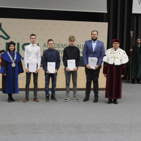 Nieodłączną częścią każdej inauguracji jest immatrykulacja, której dokonuje rektor. Reprezentantom klas towarzyszyli w tym akcie dyrektorzy szkół. Ci ostatni, jak zapewniali, z chęcią podjęli współpracę. – Wiem ile kosztuje wprowadzenie i prowadzenie takiego projektu, ale jest tego wart. Dzięki niemu uczniowie są już jedną nogą na uczelni. Uważam, że to perełka – zapewnił Tomasz Kucharczyk, dyrektor Zespołu Szkół im. Kopernika w Koninie. Kierujący konińskim Zespołem Szkół Górniczo-Energetycznych Karol Niemczynowicz przyznał, że jest entuzjastą projektu. Dodał, że w tym roku studia w ANS podjęło aż 74 absolwentów jego szkoły. Natomiast Mieczysław Drożdżewski, dyrektor startującego w programie „Ekonomika” z Koła zapewnił, że będzie w tej auli również wtedy, gdy obecnym uczniom klasy akademickiej będą wręczane prawdziwe indeksy. Wypowiedzi dyrektorów zakończyła Karolina Rakowicz, prowadząca słupecki Zespół Szkół Ekonomicznych: – Cieszę się, że możemy być w tym fantastycznym gronie.
