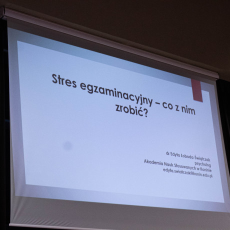 Finał spotkania stanowił wykład inauguracyjny, w którym dr Edyta Łoboda-Świątczak, psycholog i adiunkt na Wydziale Nauk Humanistycznych i Społecznych mówiła, co zrobić ze stresem, by nie zepsuł wysiłku włożonego w przygotowanie się do egzaminu. To temat bliski każdemu uczniowi, bez względu na profil klasy, do której uczęszcza.