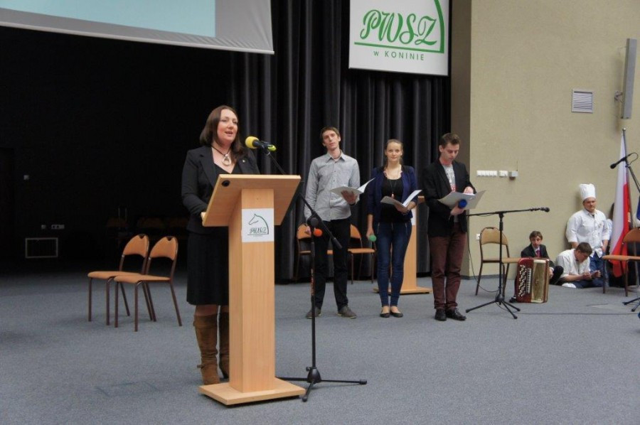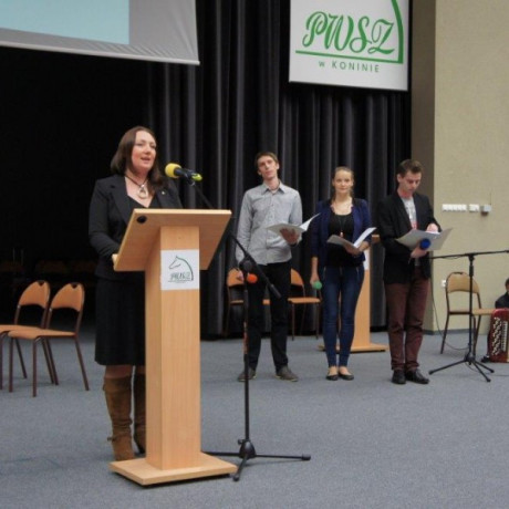 Biorących udział w konkursie trzech języków oraz gości, w tym wicekonsula Irlandii – Krzysztofa Schramma, w imieniu rektora PWSZ w Koninie jak i swoim, przywitała dr Joanna Chojnacka-Gaertner, prorektor ds. rozwoju i promocji.