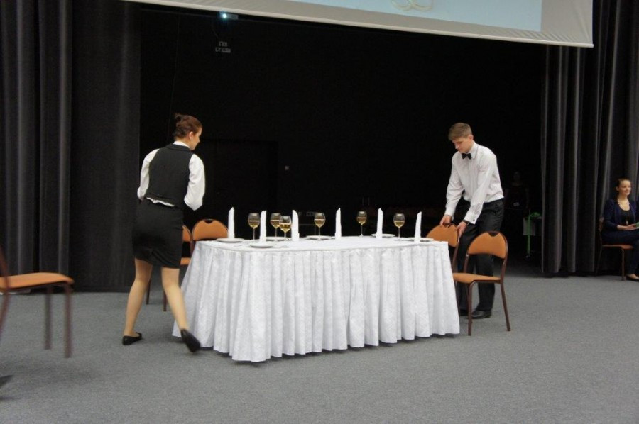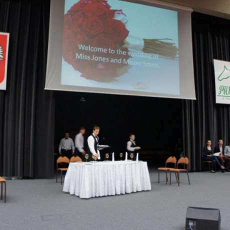 Uczestnicy „Językowego Show”, sięgającego do kultur krajów z obszaru trzech języków – angielskiego, niemieckiego i rosyjskiego – musieli swoje prezentacje dostosować do hasła przewodniego tegorocznej edycji – „Zapraszamy do stołu”. Świetnie pasowało do niego, przytoczone w trakcie spotkania, niemieckie przysłowie: Du bist, was du isst, czyli: Jesteś tym, co jesz. Były więc scenki z wesel, restauracji i kuchni. A dziewczyny z Zespołu Szkół Górniczo-Energetycznych z Konina nie tylko opowiedziały jak przygotować angielskie babeczki, ale też to pokazały, łącznie z wbijaniem jajek do miski z resztą składników. Do żołądków członków komisji i szczęśliwców w pierwszych rzędach trafiły jednak muffinki upieczone wcześniej przez uczestników (lub mamy) z niemal wszystkich szkół. Każdej prezentacji towarzyszyły slajdy z najbardziej charakterystycznymi angielskimi, irlandzkimi, niemieckimi, austriackimi i rosyjskimi potrawami. Wielu wykonawców odważyło się również zaśpiewać i zatańczyć, m.in. do słynnej rosyjskiej piosenki „Katiusza”.