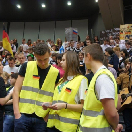 Generalnie dominował język angielski, choć nie zabrakło prezentacji w języku niemieckim, przygotowanej przez uczniów z Zespołu Szkół Ponadgimnazjalnych z Kleczewa. Gdzieniegdzie pojawiały się i zwroty rosyjskie, np. nie biezpakojsia, don’t worry, którymi kolega z Rosji pocieszał porzuconego przez dziewczynę chłopaka. Nie zabrakło również słynnych wylewnych rosyjskich uścisków z soczystymi całusami.