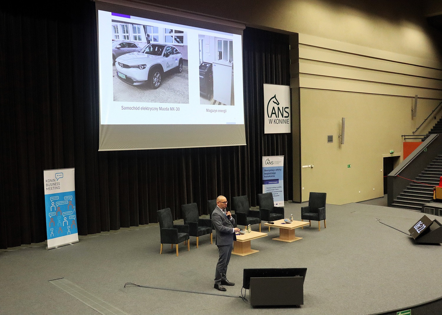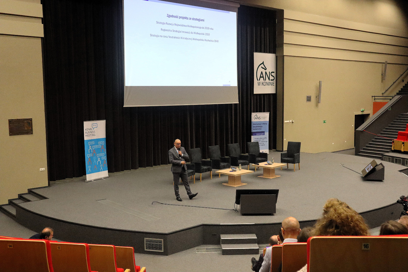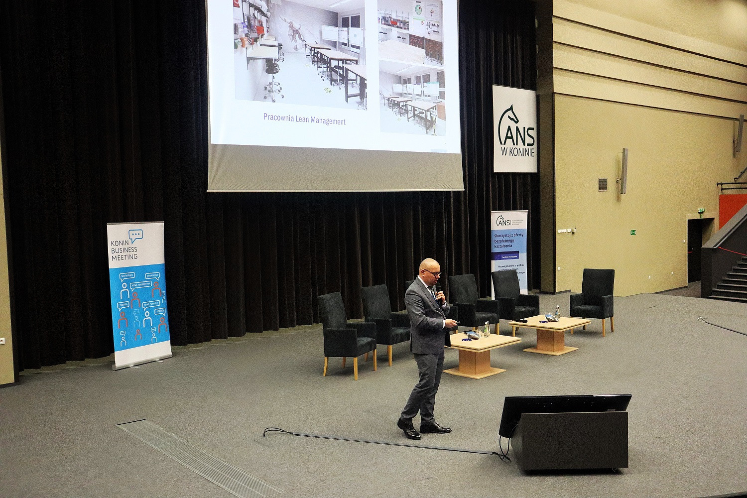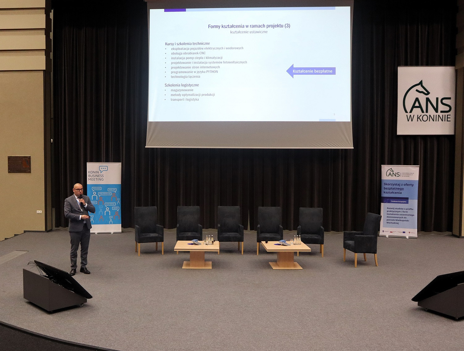 Podczas spotkania (24 kwietnia) dr hab. Artur Zimny, prof. i rektor ANS w Koninie, zaprezentował efekty realizowanego od tego roku akademickiego projektu „Rozwój studiów o profilu praktycznym i form kształcenia ustawicznego dostosowanych do potrzeb Wielkopolski Wschodniej”. Mówił m.in. o wynikach naboru na bezpłatne kierunki studiów, kursów i szkoleń oraz o zakupach pomocy dydaktycznych i wyposażenia – wszystko w ramach projektu.