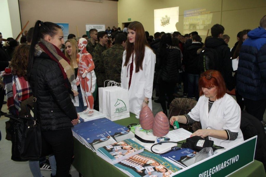 Na samym środku królowały stoiska kierunków, których jeszcze nie ma. Ich uruchomienie przewidywane jest od nowego roku akademickiego. Nie brakowało więc chętnych, żeby u pań reprezentujących przyszły kierunek w PWSZ – pielęgniarstwo ‒ zmierzyć ciśnienie oraz poziom cukru we krwi. ‒ Nie myślałam, że tak się dziś napracuję ‒ przyznała zadowolona zainteresowaniem przedstawicielka tego zawodu. Kosmetolożki ani przez chwilę nie wypuszczały z rąk pędzli do makijażu. Na ich fotelu zasiadały zarówno podekscytowanie studentki, uczennice jak i pracownice uczelni.